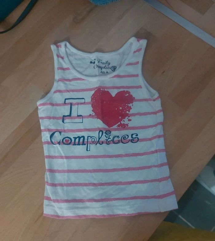 Vends débardeur blanc à rayures rose fushia 4/5 ans Fruity complice #juhjuh4ans #juhjuh5ans