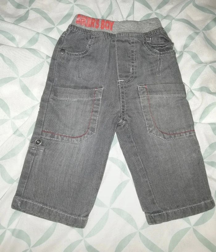 Pantalon souple style jeans couleur gris couture rouge marque orchestra 6 mois #juhjuh6mois