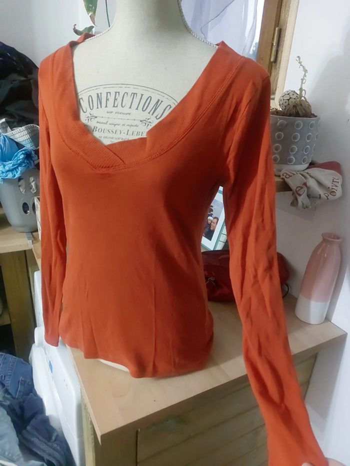 Vends haut manches longues orange foncé Col V Camaieu Taille 2 #juhjuh38 #juhjuh40