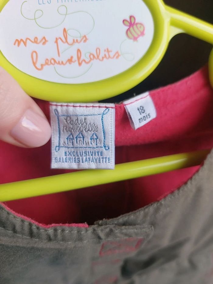 Vends robe kaki doublure rouge A scratch devant 18 mois Cadet rousselet exclusivité galeries lafayette #juhjuh18mois