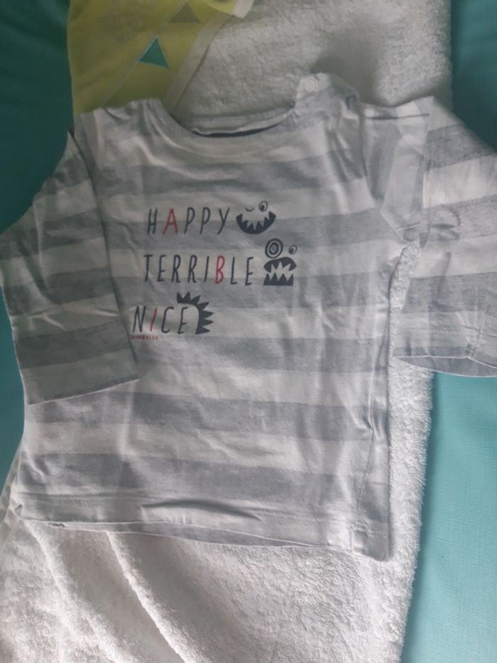 Vends t shirt manches longues rayé blanc et gris Marque kimbaloo Encolure légèrement tachée 18 mois #juhjuh18mois