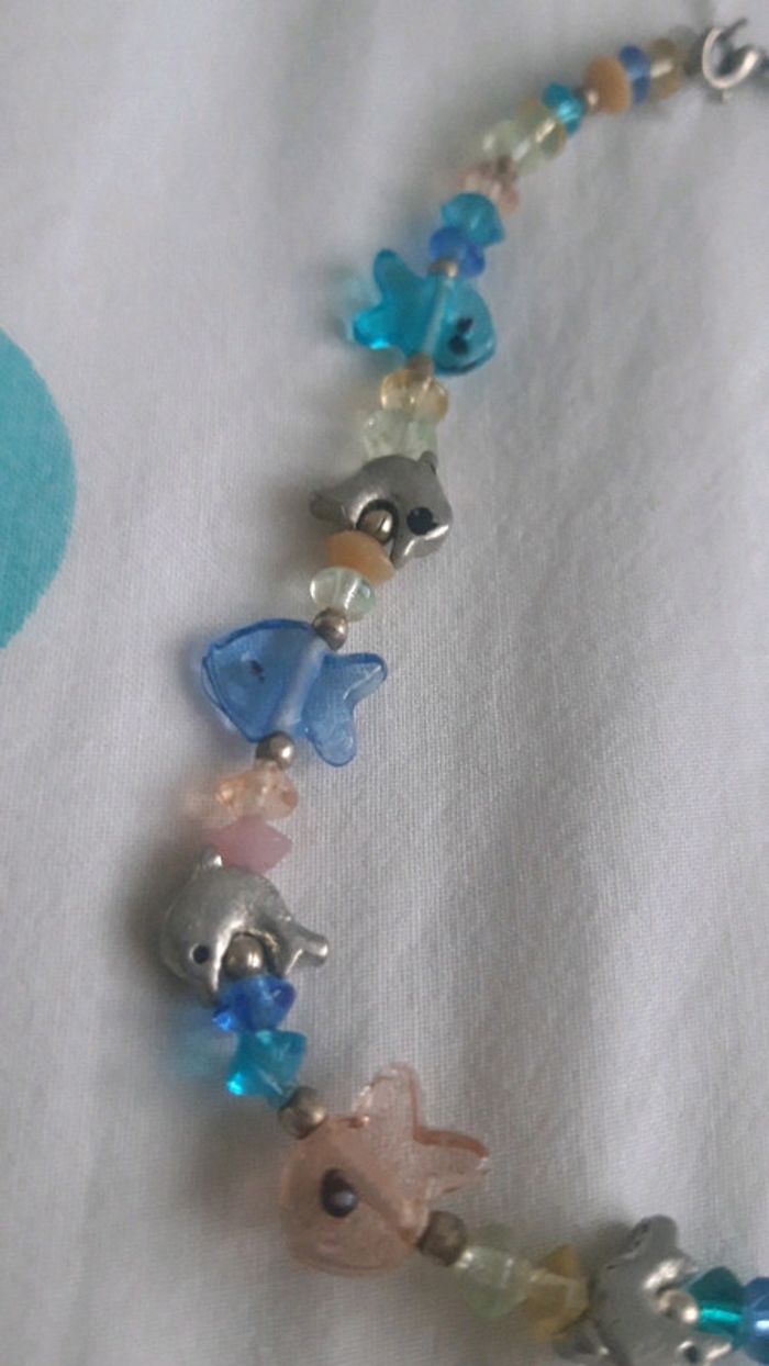 Vends collier enfant Petite fille Bleu Poisson et dauphin #juhjuhbijoux