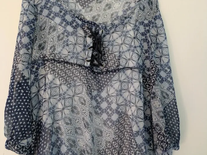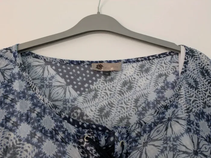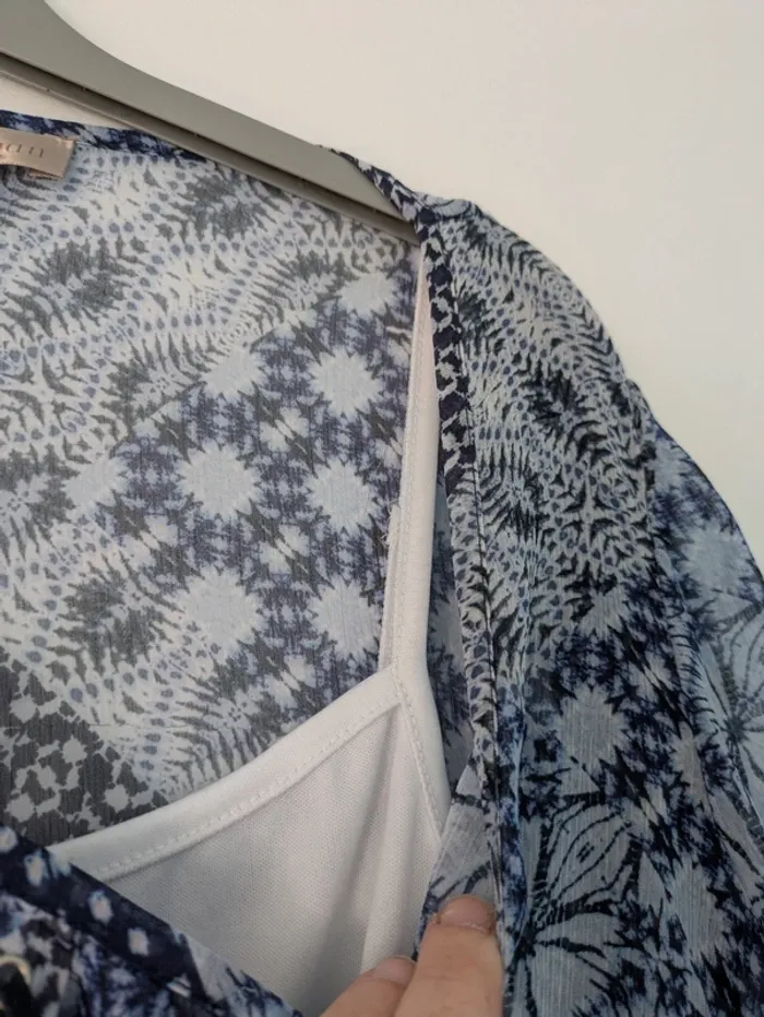 Aux femmes taille 38 marque kwoman composé d'une blouse légèrement transparente superposée à un débardeur blanc (cousu ensemble en haut des bretelles), bouton pression aux manches, possibilité de remonter les manches avec lien et bouton pression. Rendu magnifique voir photos. Mes autres annonces femme de même taille #joeypotter91_femmetaille38 [Carton tigre]