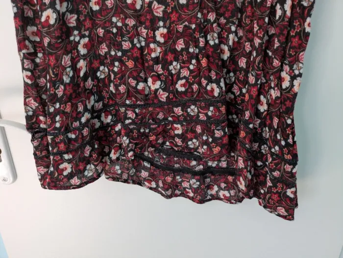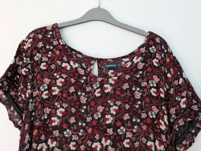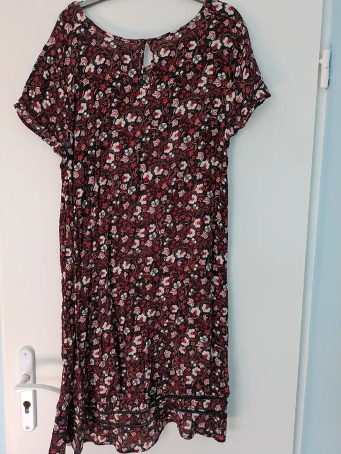 Robe été femme taille 42 marque in extenso, imprimé fleurs, effet goutte dans le haut du dos avec un bouton, petit point de couture à prévoir éventuellement à cet endroit. Mes autres annonces femme de même taille #joeypotter91_femmetaille42 [Carton tigre]