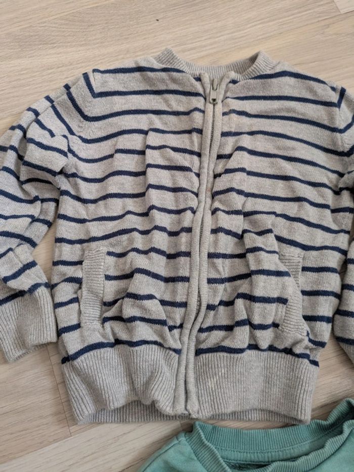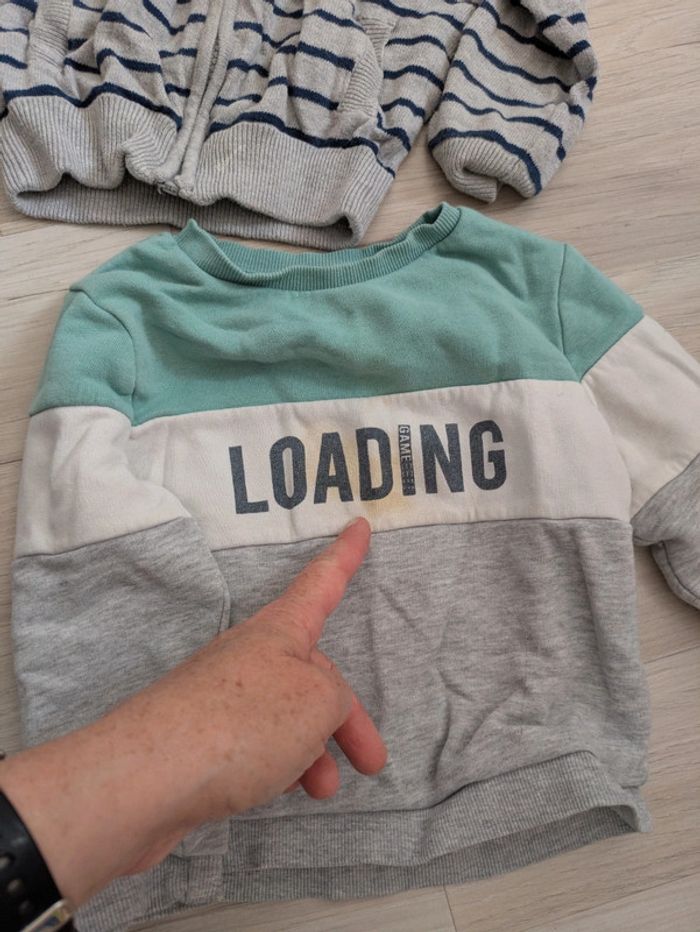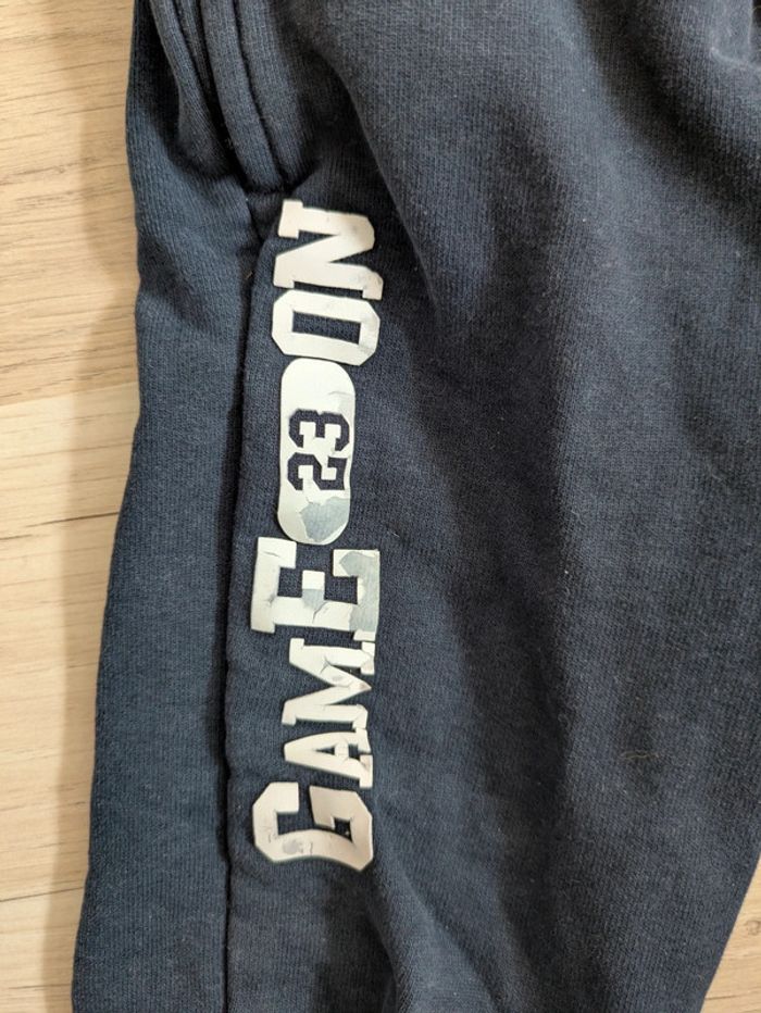 Pantalon de jogging bleu marine marque Vertbaudet pour garçon taille 3 ans avec taille élastique à lien de serrage inscription Game One sur la jambe droite, 2 véritables poches. Je donne avec un gilet zippé de même taille marque Tissaia et un sweat marque Kiabi qui présentent une tâche mais peuvent encore dépanner donc cadeau avec ! :) Mes autres annonces de même âge #joeypotter91_garçontroisans [Caisse soleil]