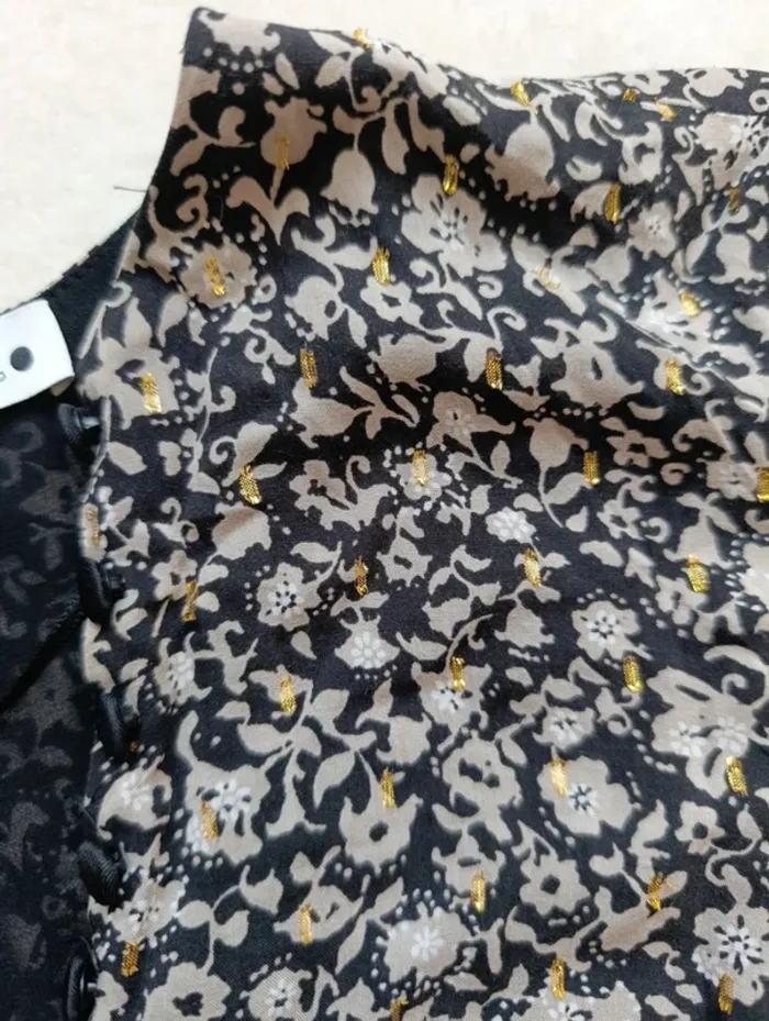 Top court chemisier blouse haut Zara S noir fleuri beige et doré léger fluide - photo numéro 8