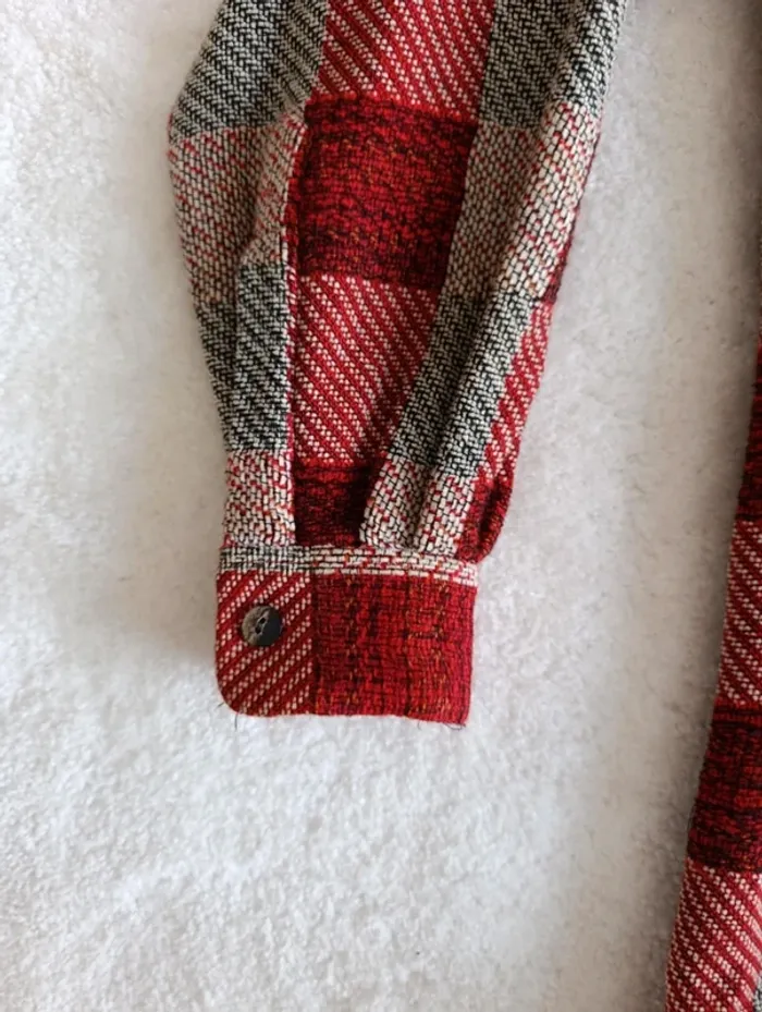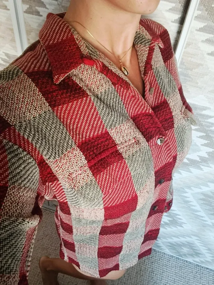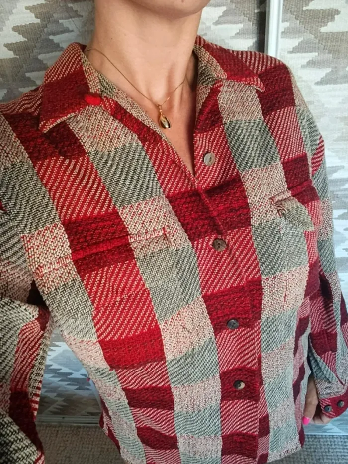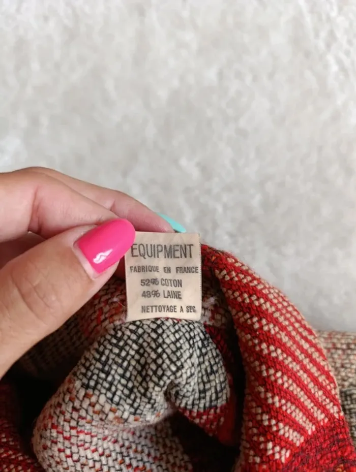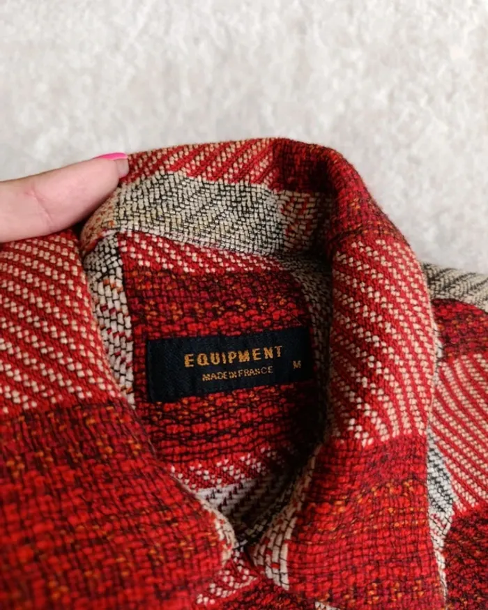 Veste chemise Equipment M à carreaux rouge bordeaux beige laine coto made un France