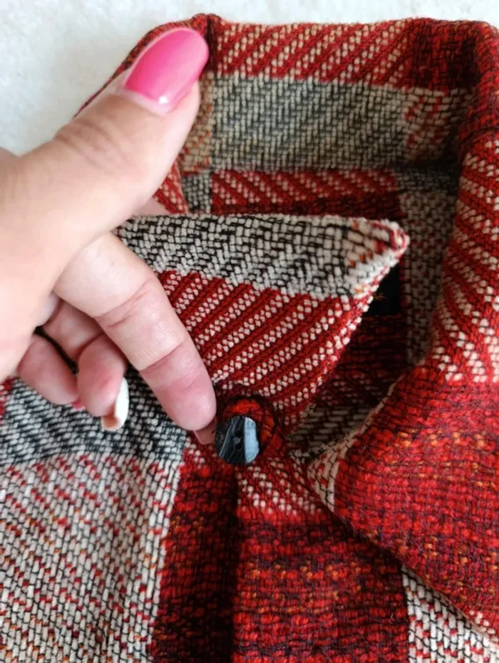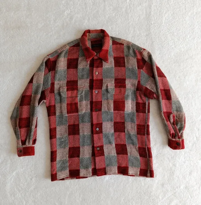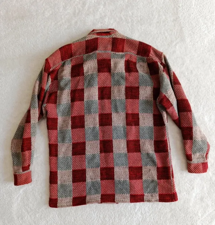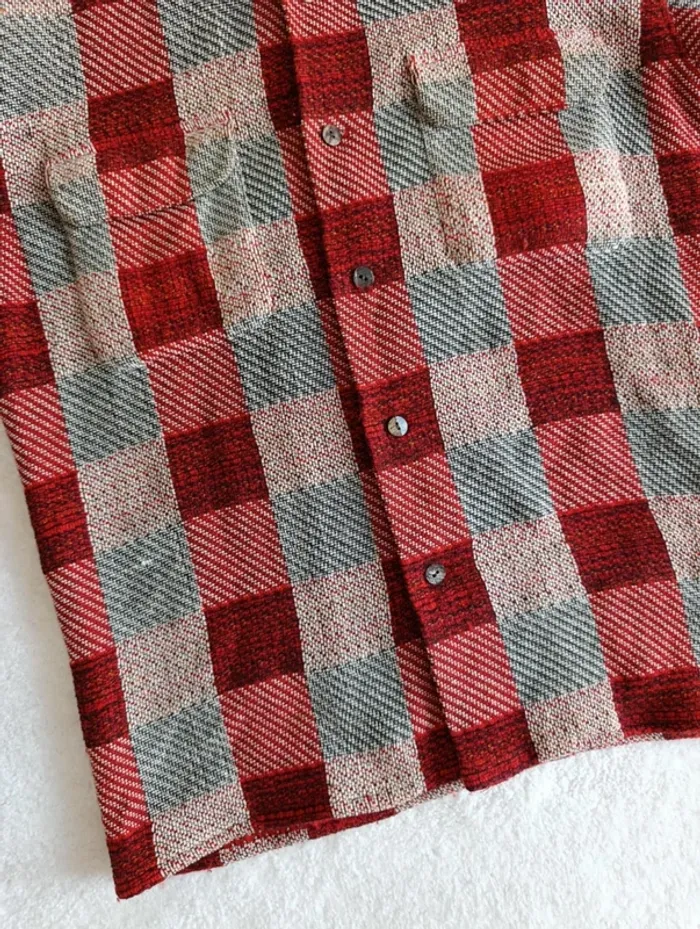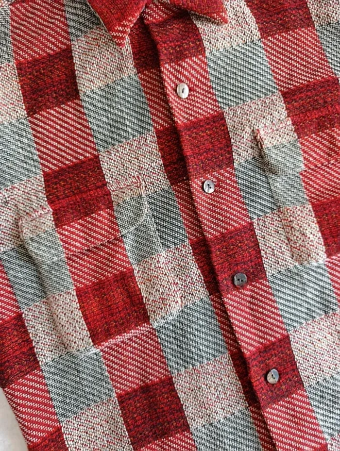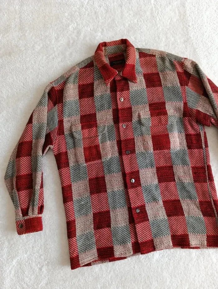 Veste chemise Equipment M à carreaux rouge bordeaux beige laine coto made un France