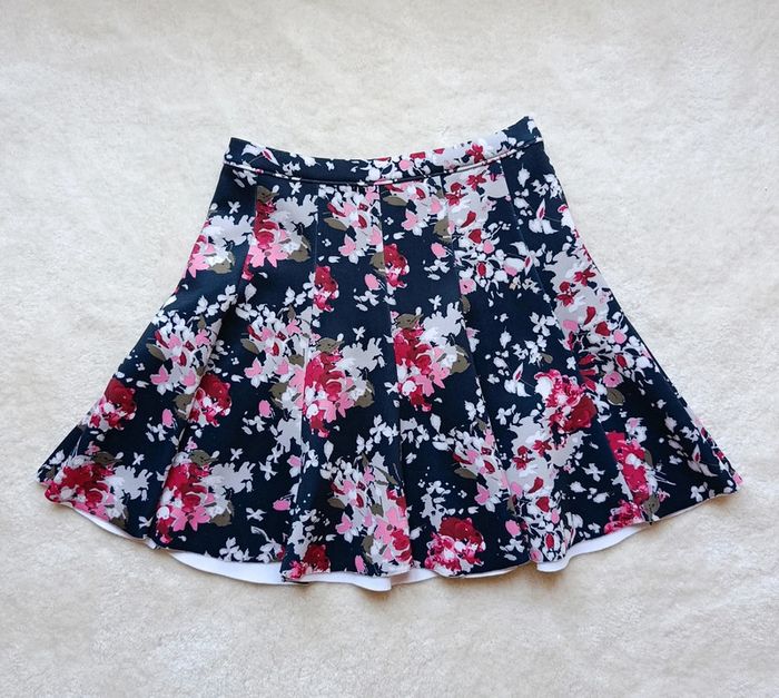 Mini jupe Abercrombie & Fitch S noir fleuri évasée - photo numéro 1
