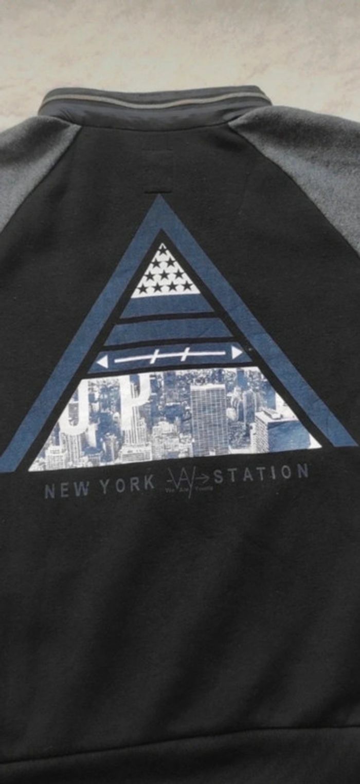 Très bon état. Capuche matière K-way cachée dans le col, très discret et pratique. Inscription New York Way station au dos. Largeur aisselles : 48 cm. Longueur veste : 58 cm. 09/03/25