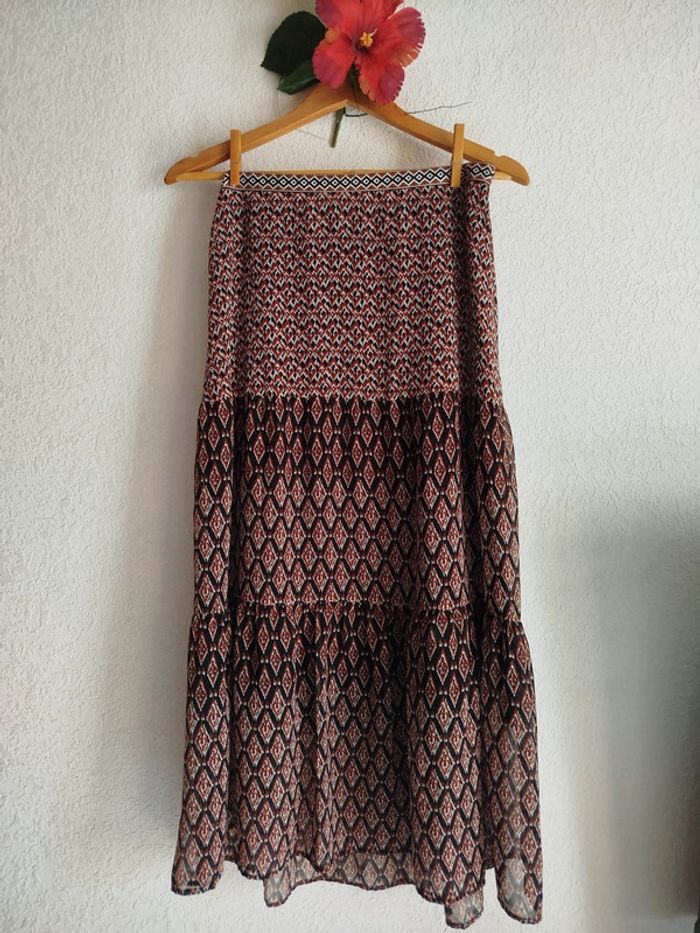Jupe longue chevilles mousseline motifs bohème - photo numéro 1
