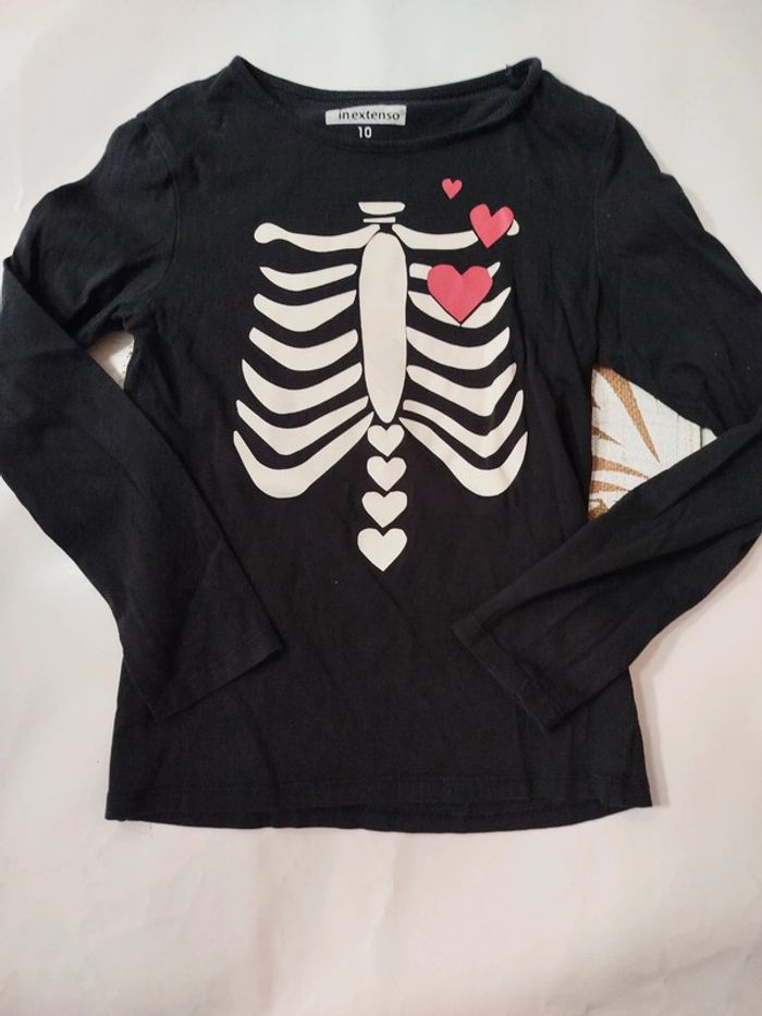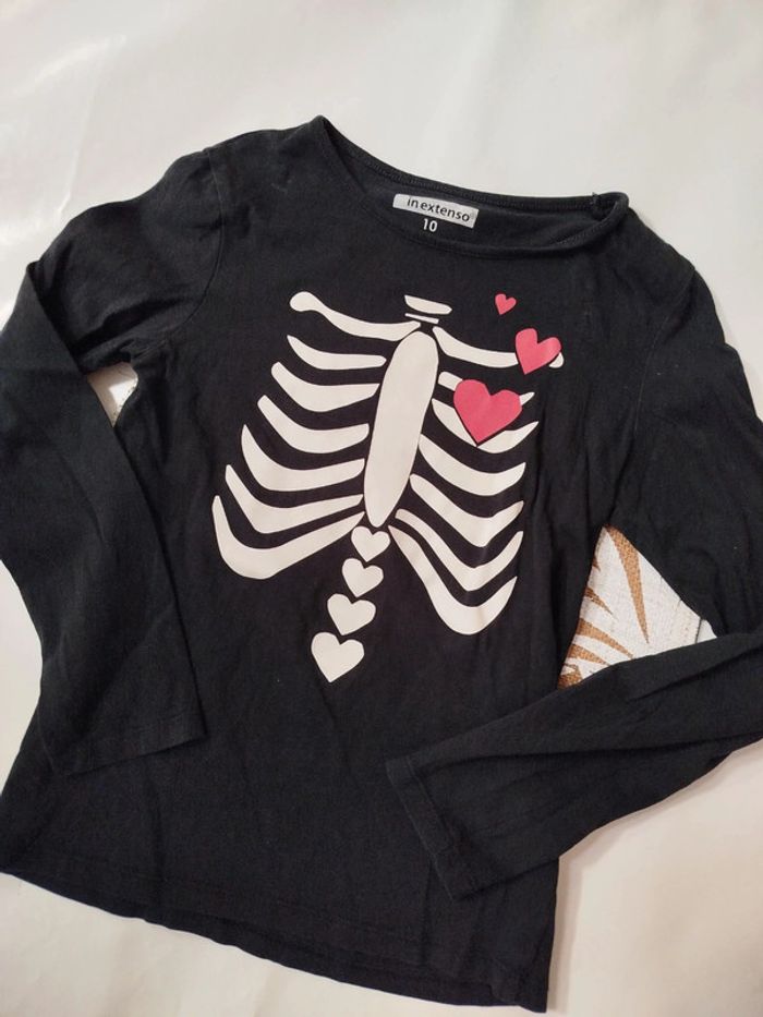 Tee shirt manches longues squelette 10 ans fille noir - photo numéro 1