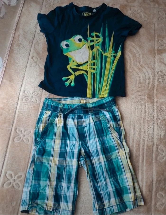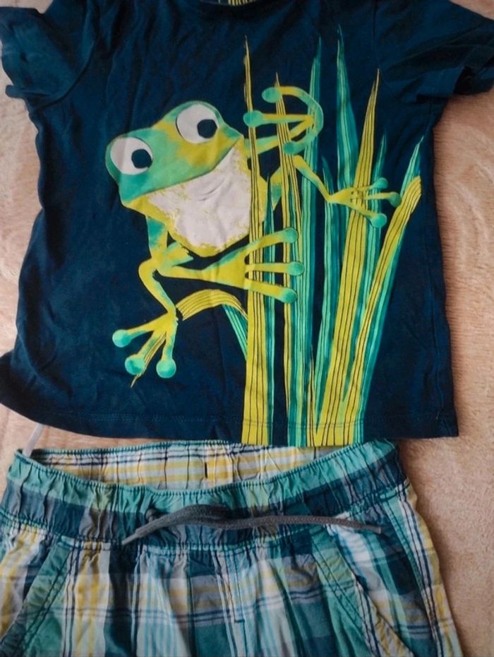 Vêtement d'été garçon taille 122 Pantacourts à carreaux Et tee-shirt grenouille Ensemble C&A