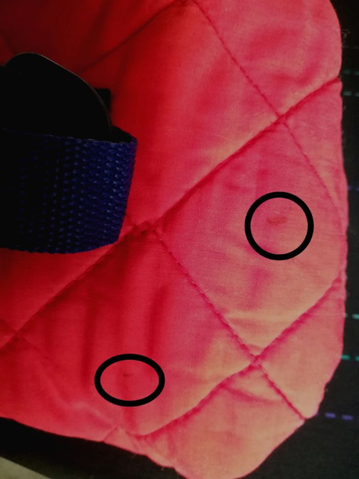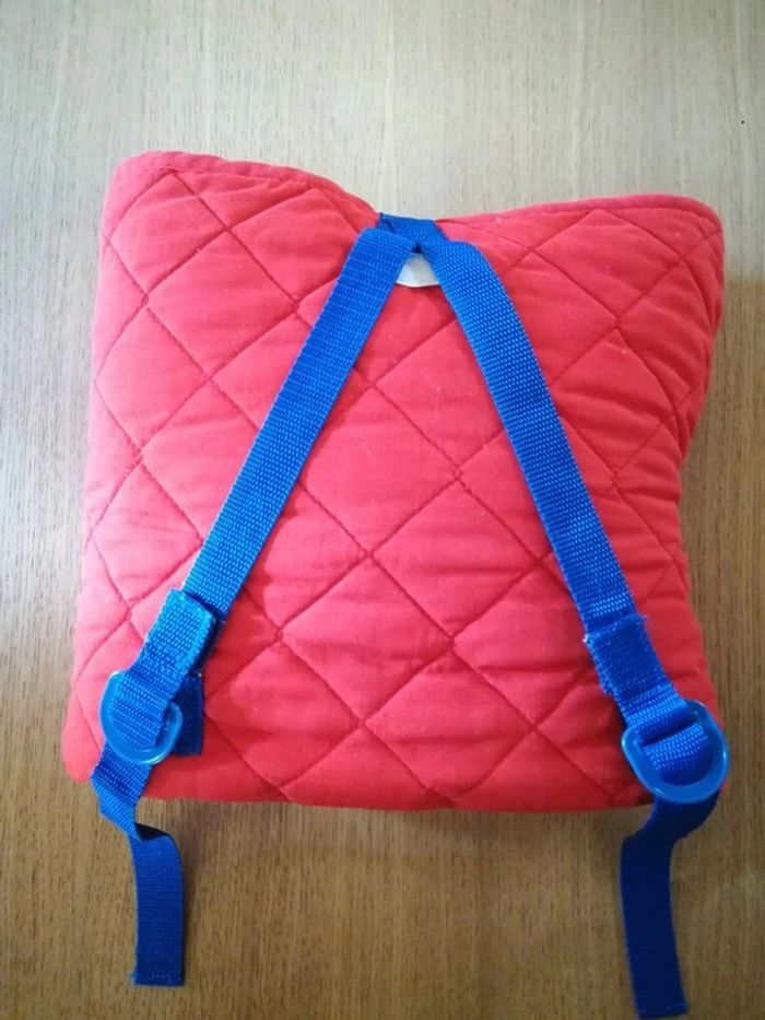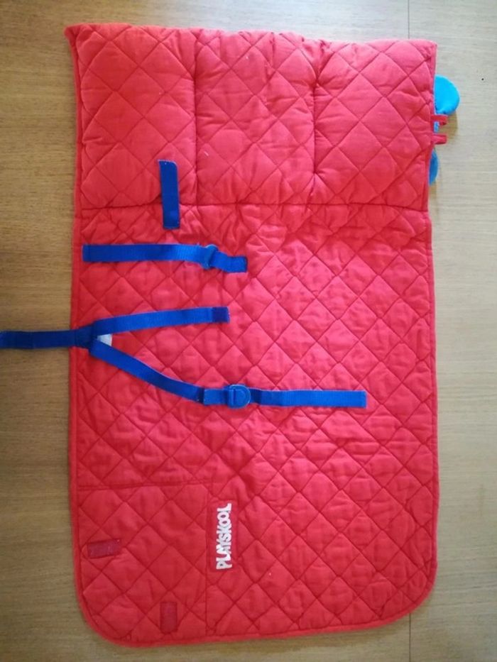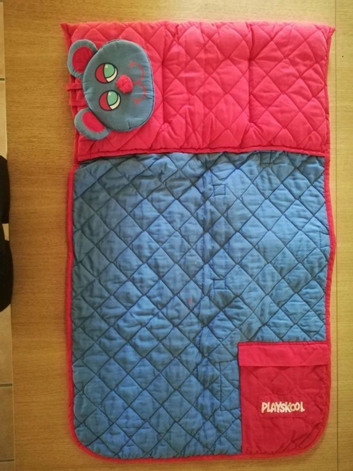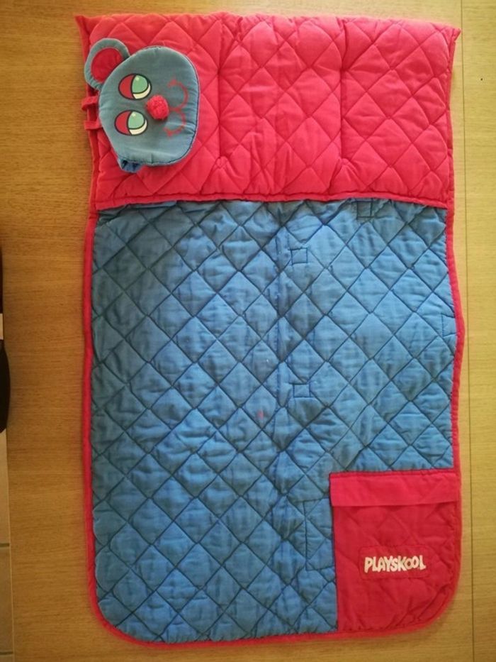 Surmatelas avec mini oreiller intégré pour : - protéger le lit, - placer sur le petit lit de la sieste à l'école. Pour aller dormir chez nounou, chez mamie ou chez les cousins, cousines... Douillet et confortable. Il crée un petit espace agréable pour l'enfant. Le surmatelas fait 1m sur 60cm. La partie plus épaisse fait 28cm de haut. Se replie facilement et se transporte en sac à dos. Lavé et propre. À noter deux petites tâches (de feutre je suppose) cf la photo 6.