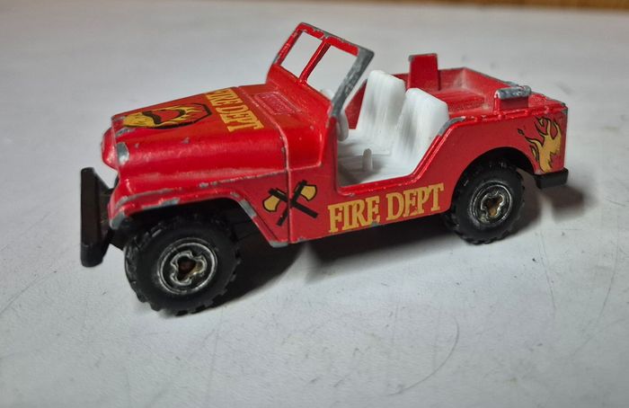 Jeep en metal rouge fire dept Majorette publicitaire ESSO echelle 1/46 Merci de vérifier l'etat sur les photos avant l'achat. #majorette #jeepmajorette #majoretteesso #esso #miniature #miniaturemajorette #majorettecollection
