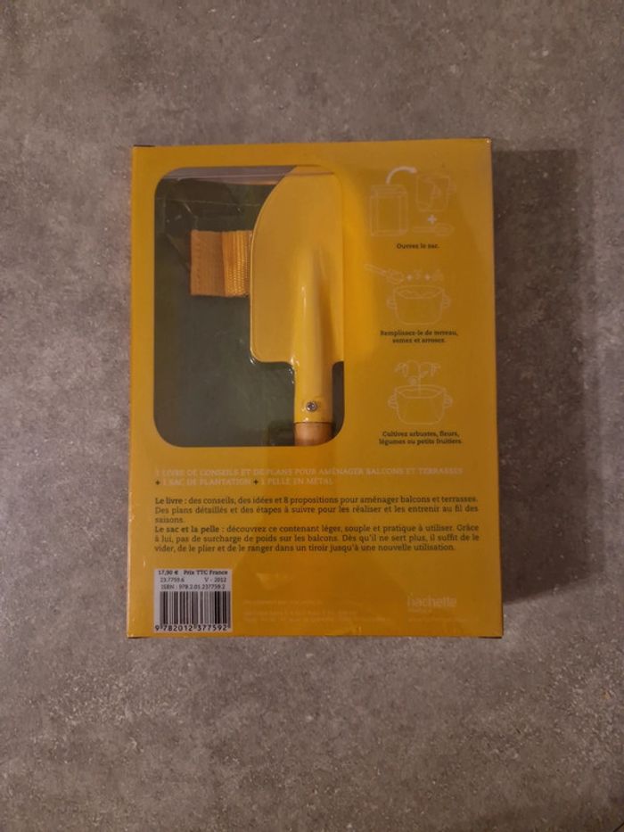 Livre de jardinage +pelle+sac de plantation neuf avec étiquette hachette jardin