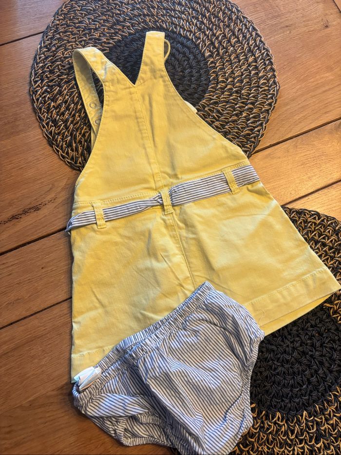 Superbe robe salopette imitation jean avec bloomer, état proche du neuf ! Boutons pressions réglables aux bretelles Okaïdi 23 m.