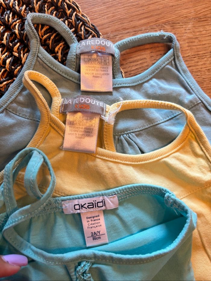 Lot de 3 débardeurs, 18-24mois 1 Okaïdi tacheté à la lumière et 2 la redoute, très bon état