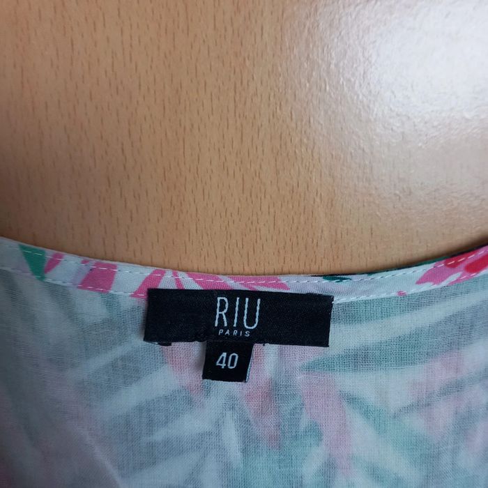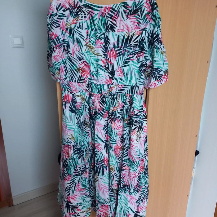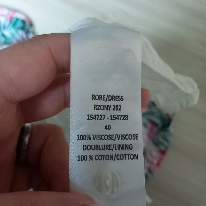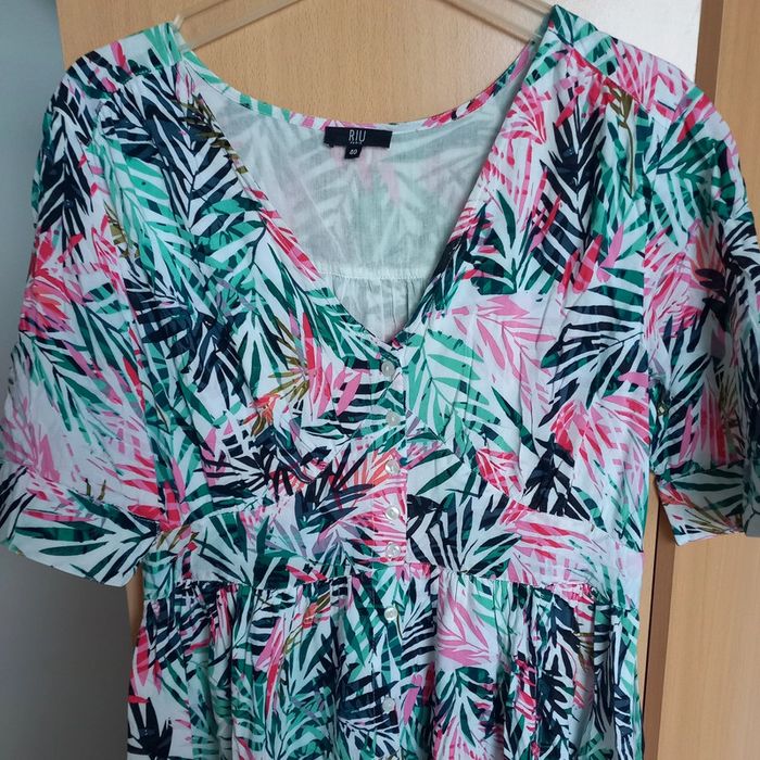 Robe fluide col v blanche à motifs feuilles roses noires verts Jacqueline riu Taille 40