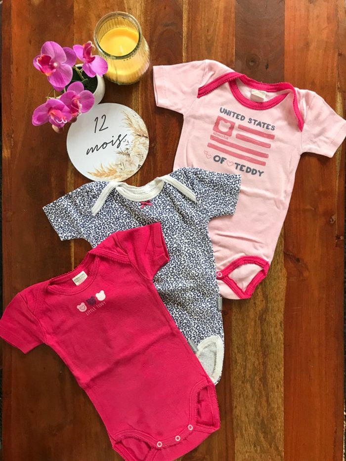 Lot de 3 bodies manches courtes 12 mois - photo numéro 1