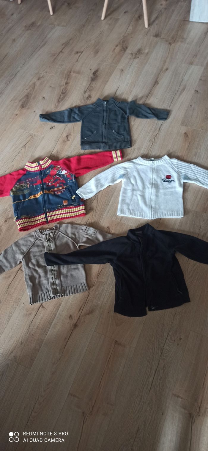 Vends lot de 5 gilets 4 ans ( le noir fermeture HS)