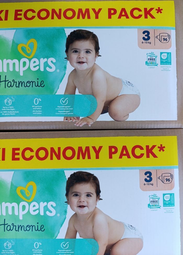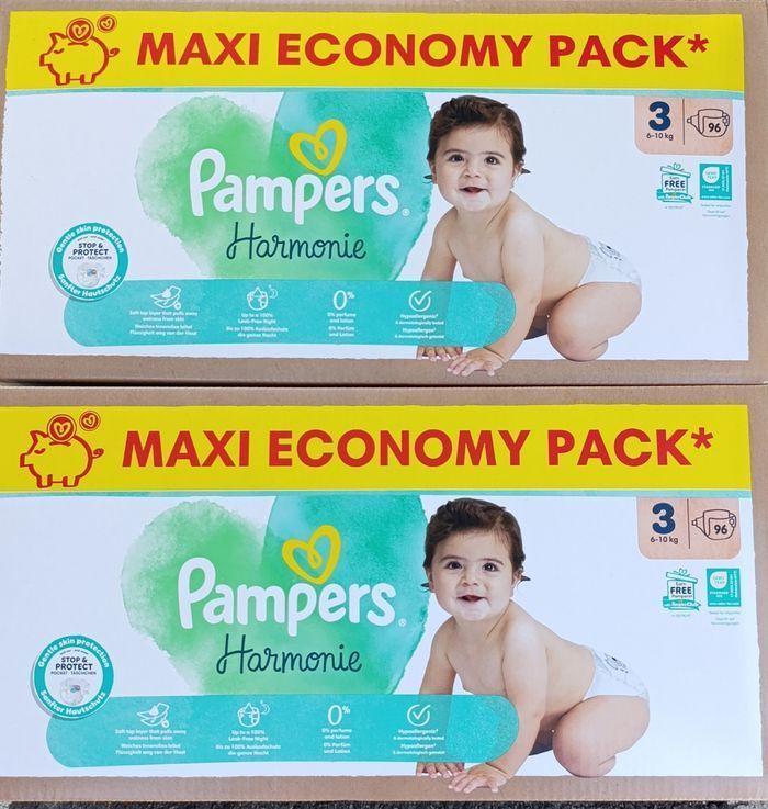 Deux cartons de couches harmonie taille 3 neufs, 192 couches au total.