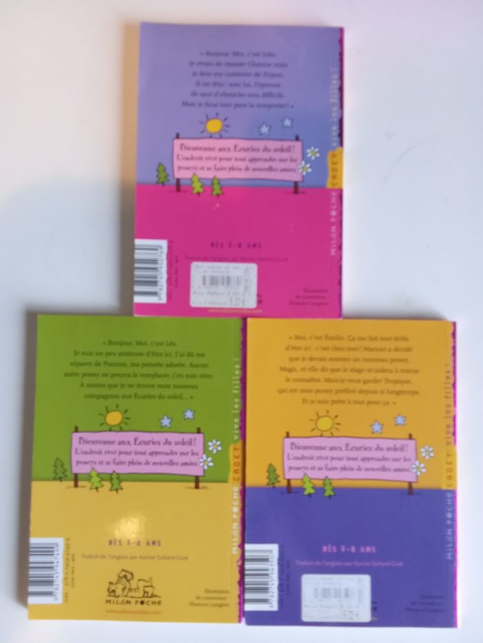 Lot de 3 livres roman sur l'équitation. Bon état général Prix pour le lot Beaucoup d'autres livres fille également à vendre ds mon dressing et réduction activée