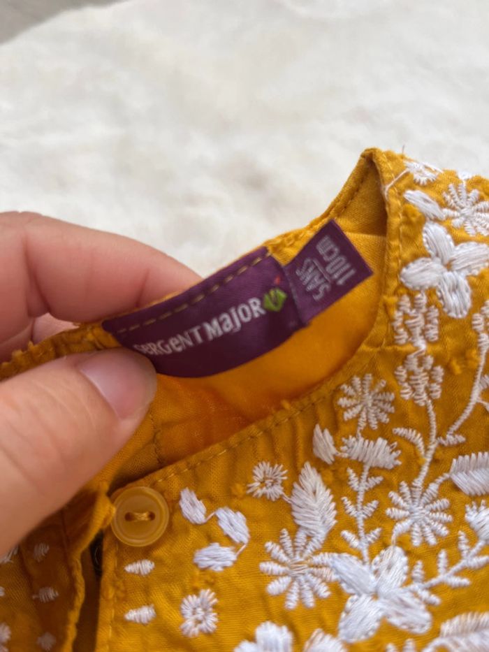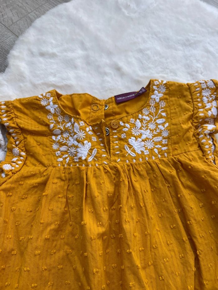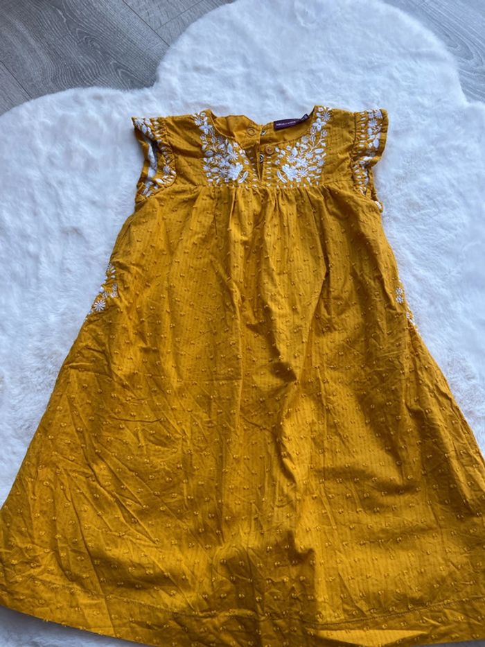 Robe été jaune moutarde Manche courte Broderie blanche 5 ans Pressions haut du dos Mis peu de fois