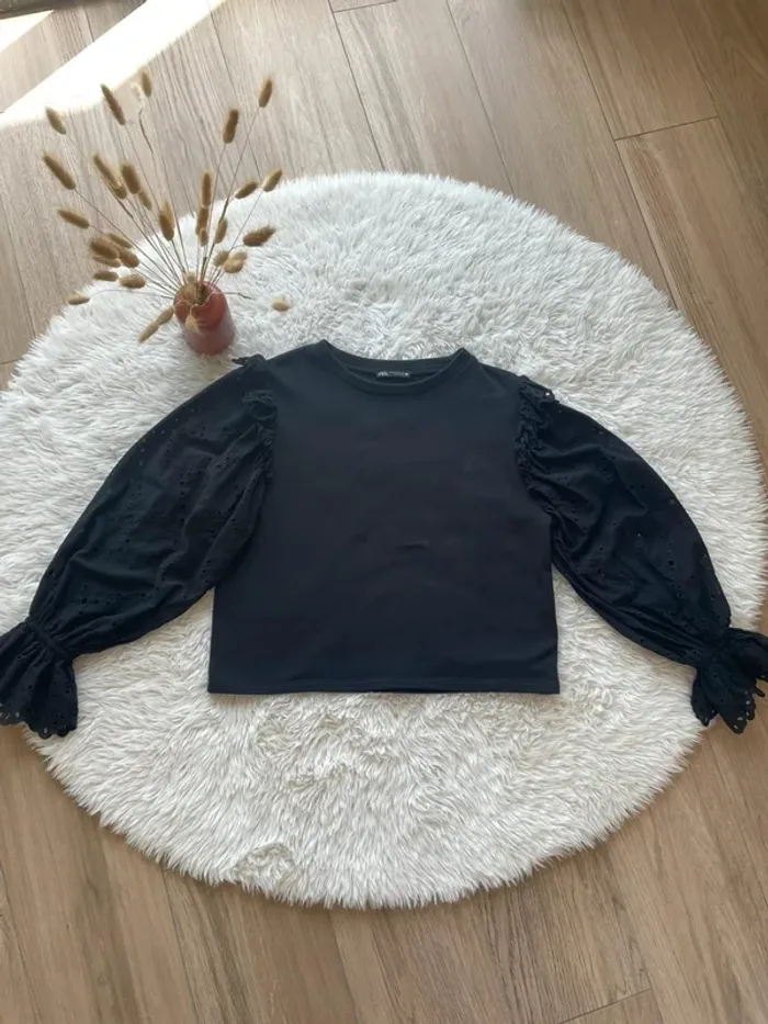 Haut Zara à manches bouffantes dentelle - photo numéro 1