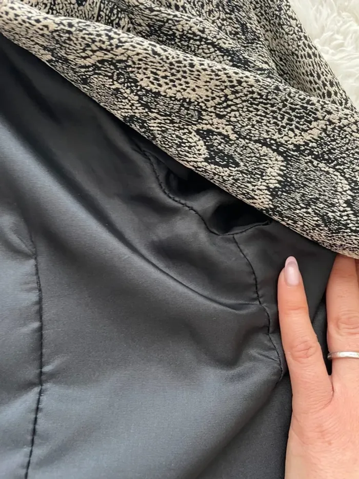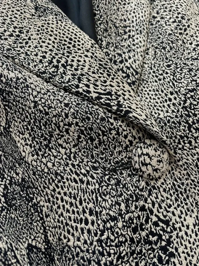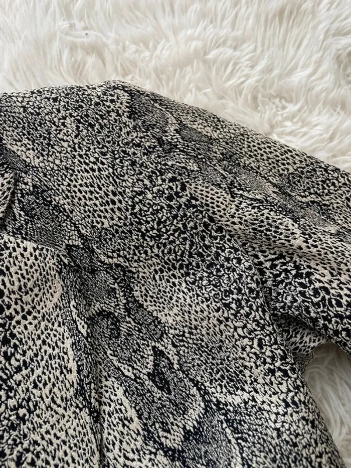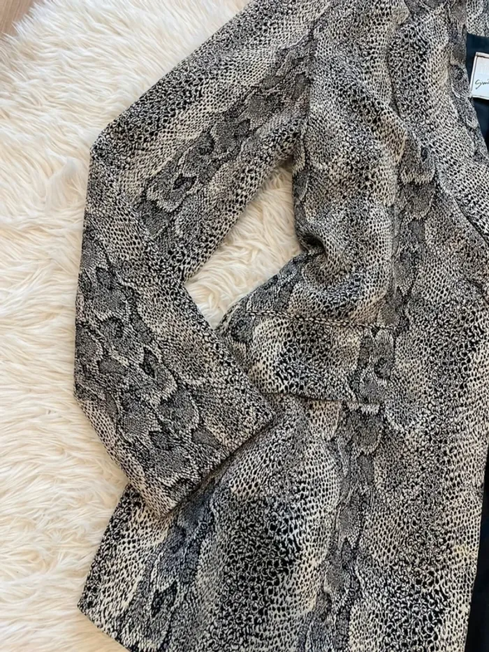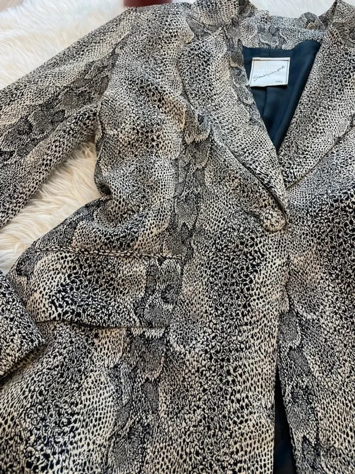 Très jolie blazer long cintré motif serpent avec fils d’argent Très belle qualité Taille 38 mais taille plutôt 36 (selon moi mais j’ai une poitrine généreuse) Marque Sinequanone Jamais portée