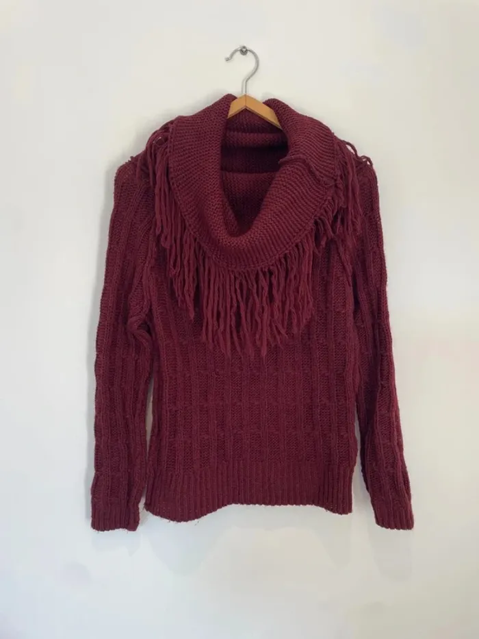 Pull col large à frange