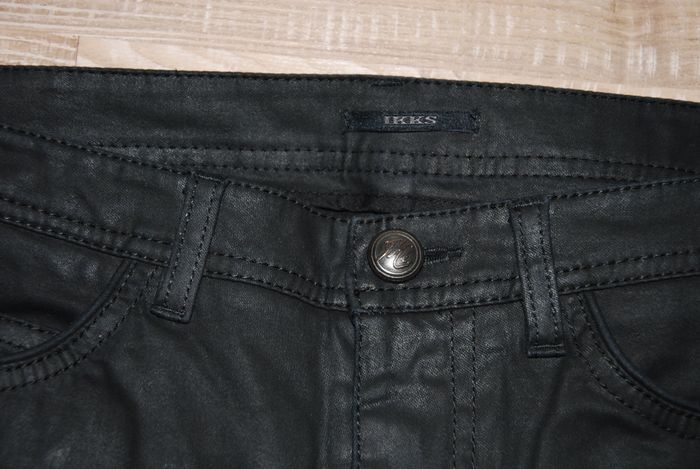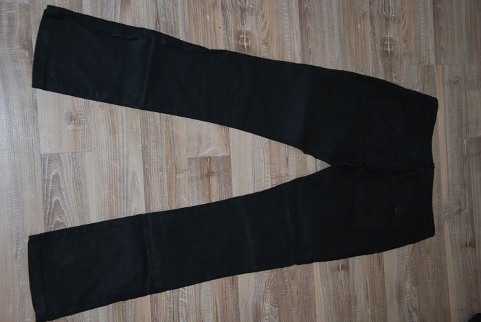 pantalon jeans ikks noir taille 34 etat neuf tissus brillant taille a plat 36 cm taille jusqu'en bas 95 cm entre jambe jusqu’en bas 75 cm