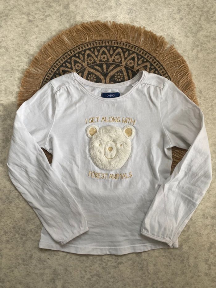 ▪️T-shirt manches longues blanc ours de la marque Okaidi taille 5 ans ▪️Comme neuf #okaidi #okaidi5ans #5ans #tshirt #ours #tshirt5ans
