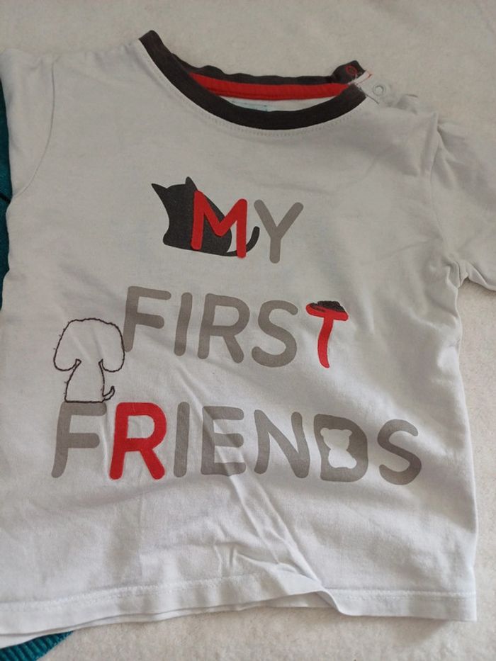 Pantalon bleu marine T-shirt manches longues "my first friends" Gilet a boutons 18 mois Très bon état #18mois #18moisgarçon #18moislexou_77 #obaibi18mois