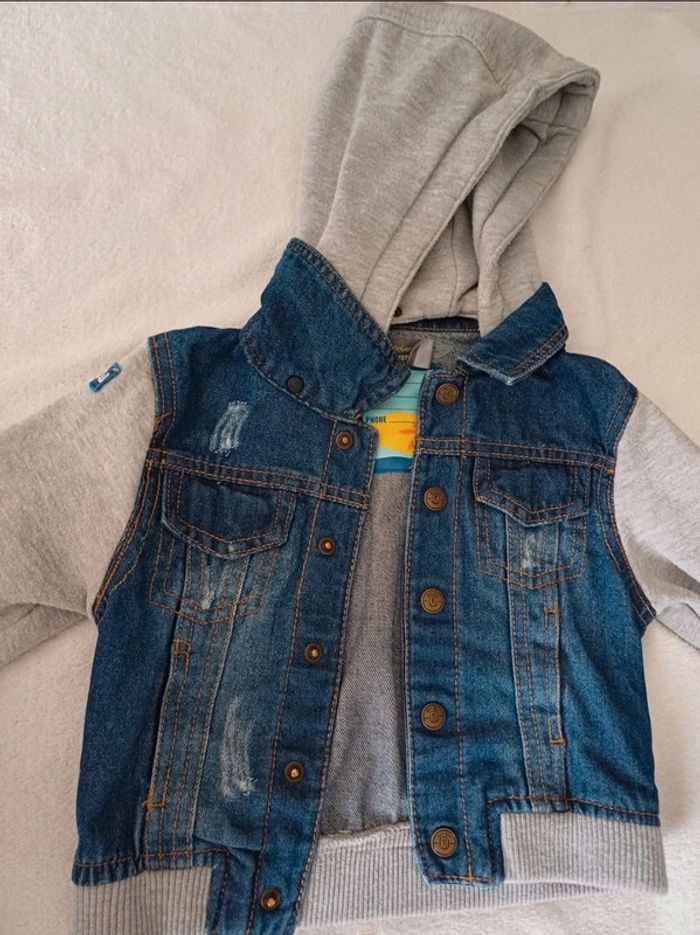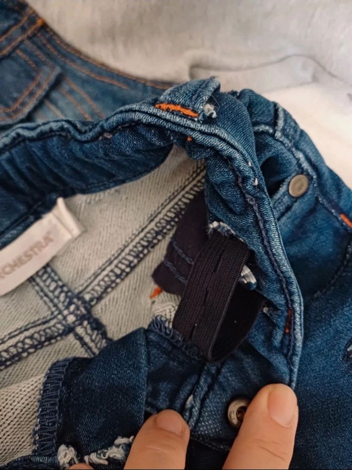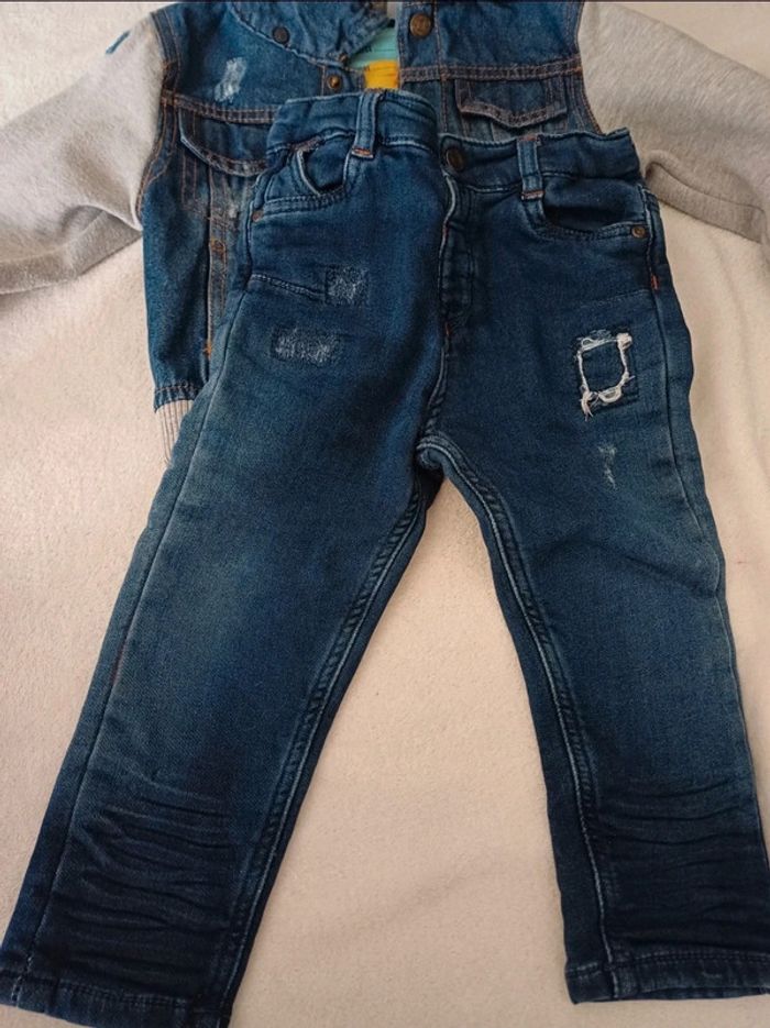 Jean bleu avec effet déchiré sur le haut de la cuisse. Veste en jean manches sweat. 2 ans Très bon état Orchestra #2ans #2ansgarçon #2anslexou_77 #orchestra2ansgarcon