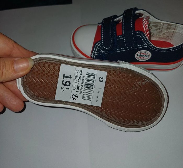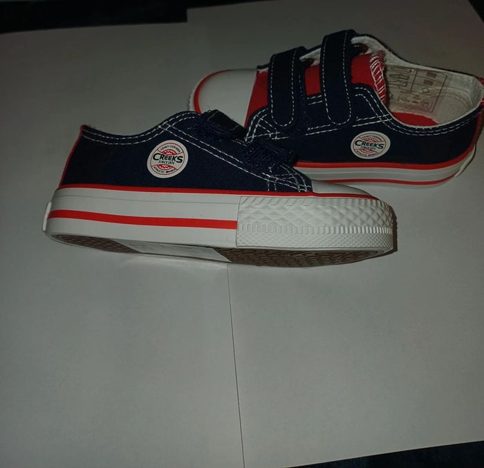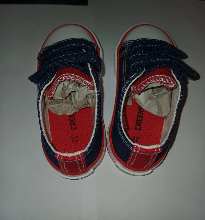 Tennis en toile mi saison Bleu marine, blanc et rouge Taille 22 Neuve avec étiquette 🏷 #basketsgarcon22 #creeksgarcon #chaussuresbebelexou_77