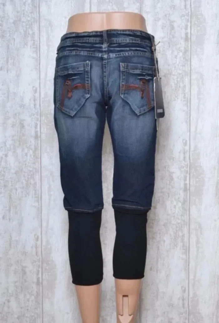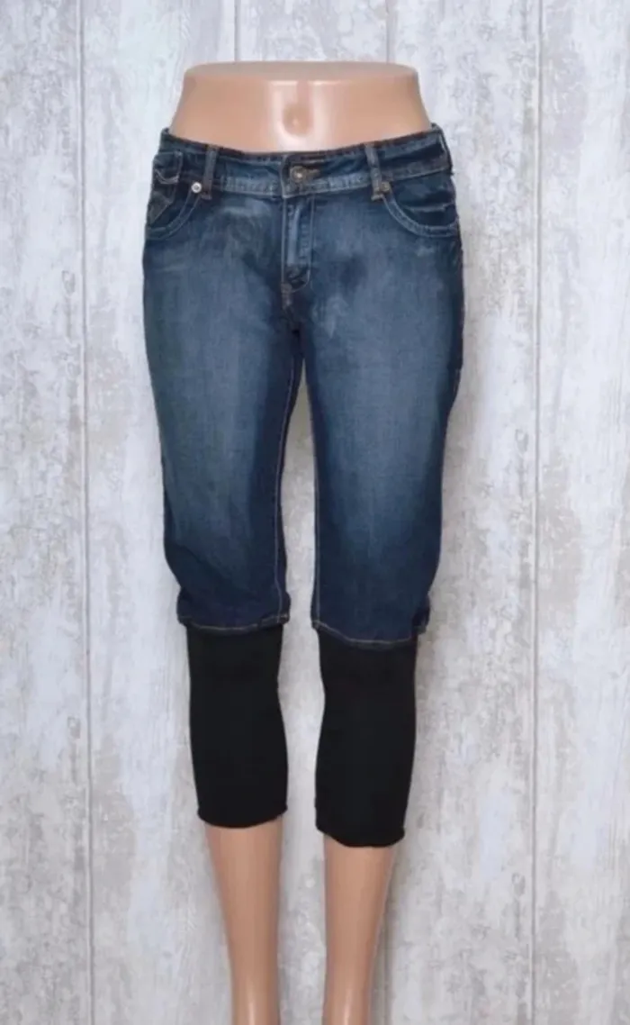 Pantacourt jeans bleu cici miss T 40 42 Pantacourt jeans bleu ♥ CICI MISS ♥ T 40 42 Ƹ̵̡Ӝ̵̨̄Ʒ beau pantacourt de couleur bleu jeans avec manchon noir au niveau des mollets taille 42 matière 100% Viscose Doublure 100% Polyester NEUF avec etiquette MARQUE : CICI MISS -Largeur Taille : 39 cm -Longueur de l'entrejambe : 55 cm -Longueur Total : 79 cm Mesures prises à plat. N’hésitez pas à regarder mes autres vêtements en vente en cliquant sur le lien taille correspondant . #vetements40_audreyhei #vetements42_audreyhei