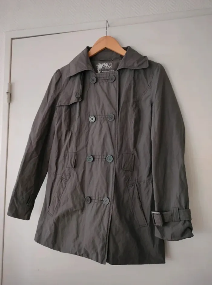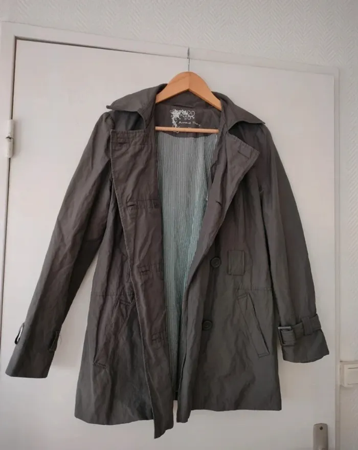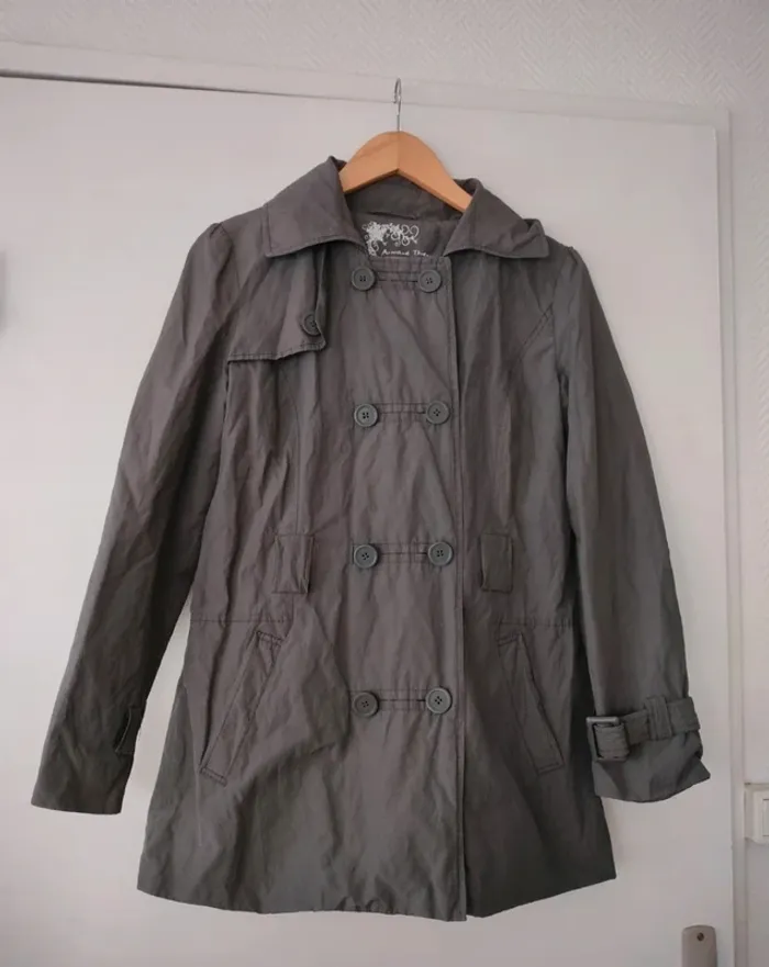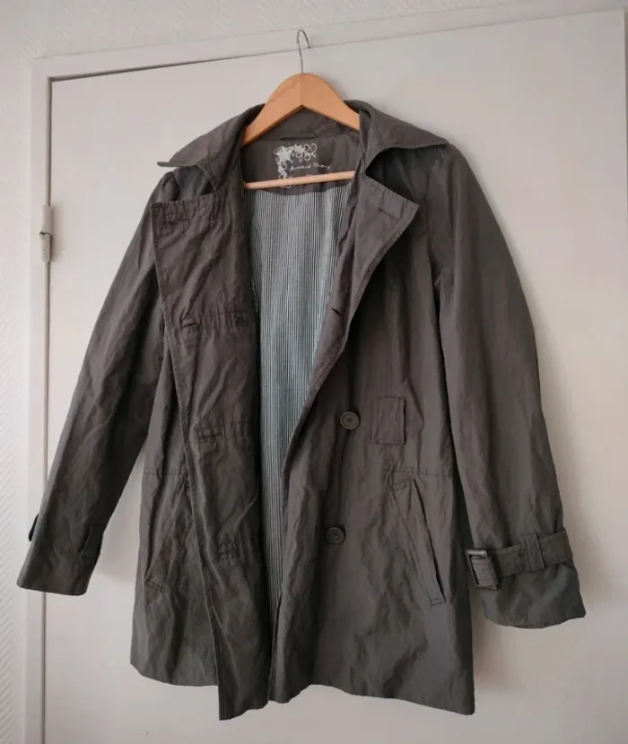 Veste gris taupe de la marque Armand Thiery Taille 1 TB état, mais je n'ai plus la ceinture. #aedenpulls #aedensix #armanthiery #trencharmandthiery