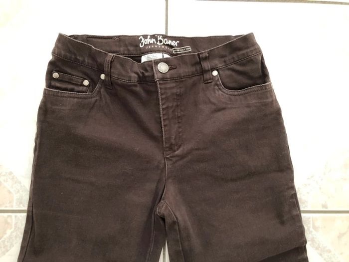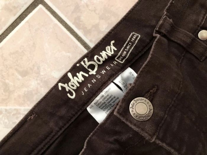 beau pantalon de couleur marron taille 36 matière coton elasthanne marque john baner taille à plat 36cm au niveau de la ceinture et longueur 101 cm et entre jambe 81 cm bas du pantalon 15 cm en très bon état #odTAILLE36