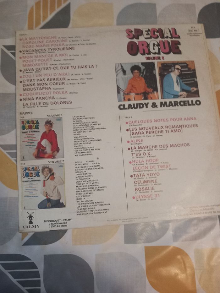 Disque vinyle 33 tours Artiste : Claudy et Marcello Titre : Spécial orgue volume 3 Face A 8 titres Face B 7 titres En bon état