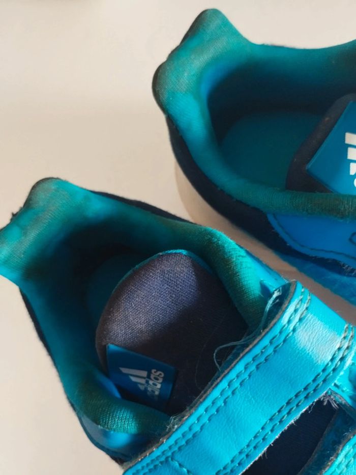 Paire de baskets bleu et turquoise de chez Adidas, en bon état général. Le tissus est un peu marqué mais peut se laver. En taille 31. #rosered16chaussures #rosered16garçon