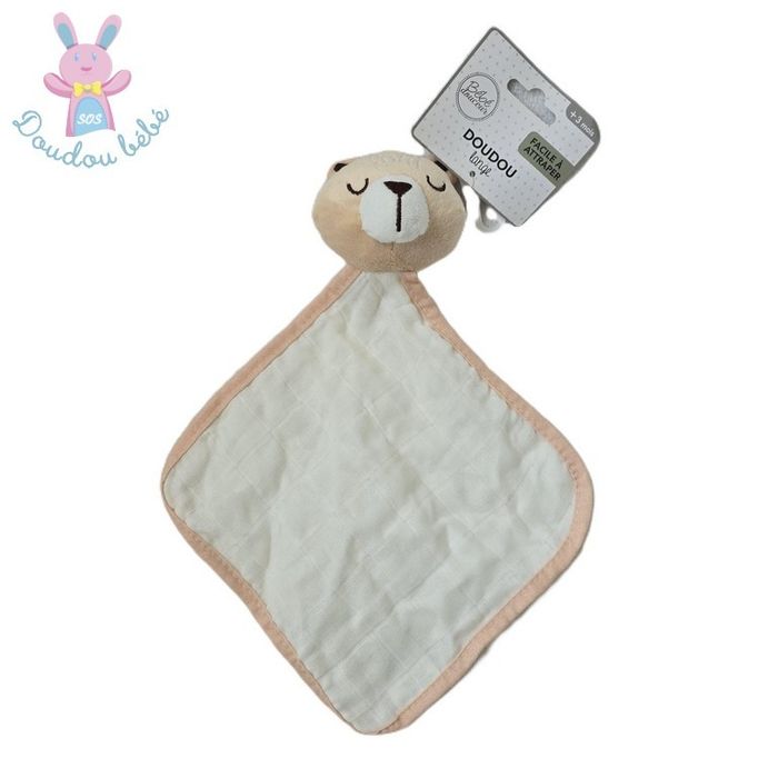 BOUTIQUE PRO SOS DOUDOU BEBE (+ de 3000 doudous en stock) ---------------------------------- Doudou plat OURS marque BEBE DOUCEUR Velours beige et blanc avec lange tissu blanc beige (réf D-1216N) Neuf avec étiquette #sosdoudouours