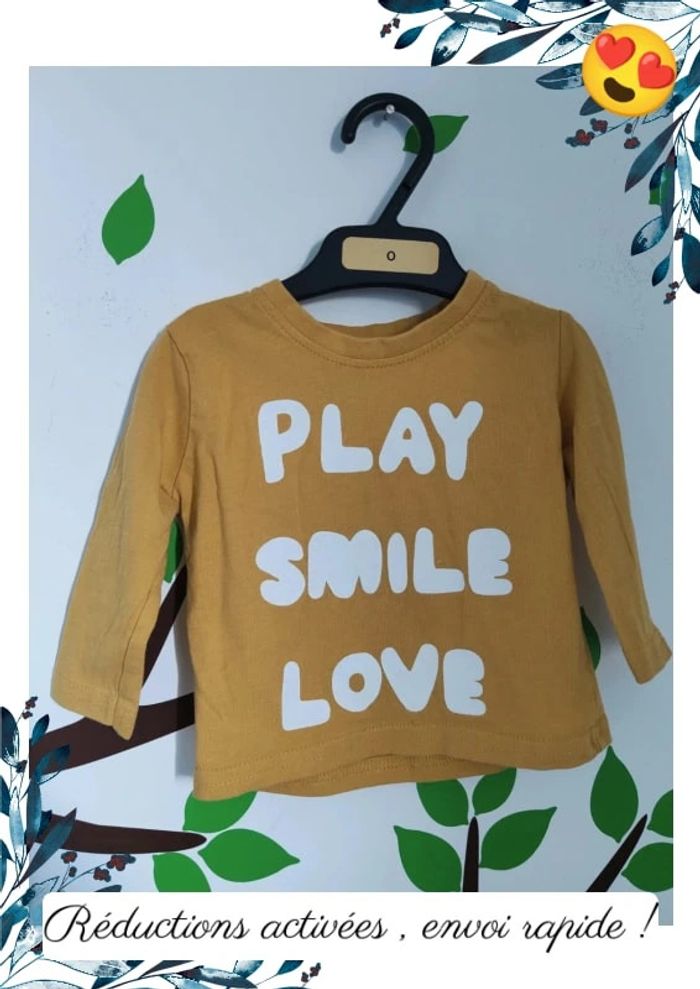 Sous pull bébé "play, smile, love" 0-3 Mois - photo numéro 1