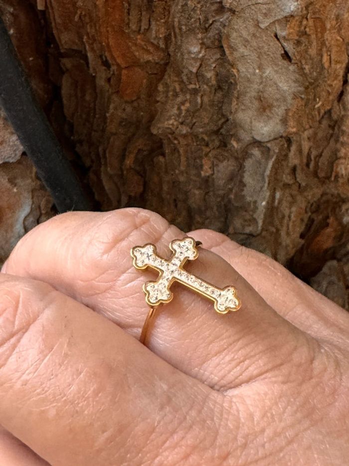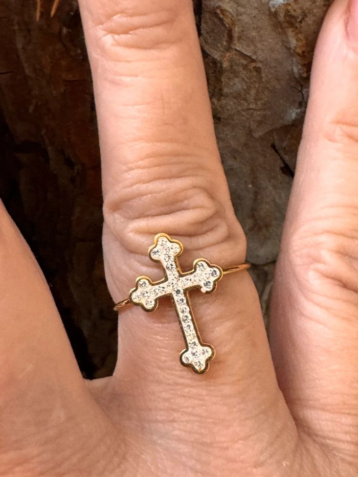 Bague croix acier inoxydable or cristaux réglable - photo numéro 2
