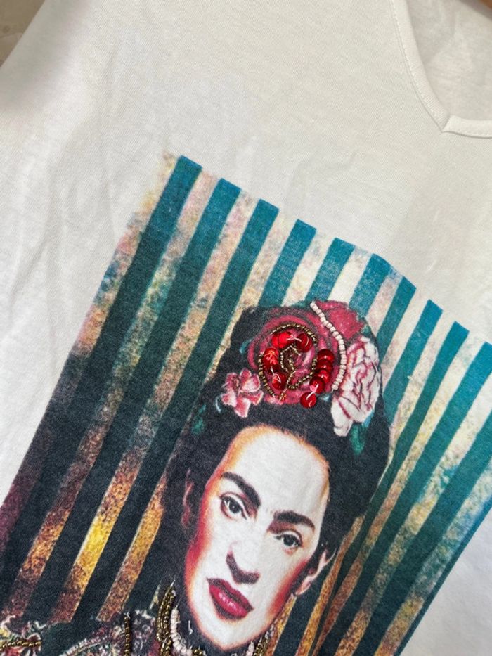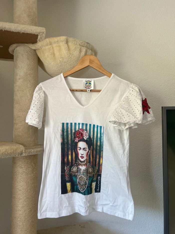Cette chemise est élégante et artistiquement unique, surtout avec ce portrait vibrant de Frida Kahlo au centre, combiné aux manches à broderies délicates. En taille S , il mesure 45 cm d’aisselle à aisselle et 60 cm de longueur. Il est composé de 70% de coton et 30% de polyester #fridakahlo