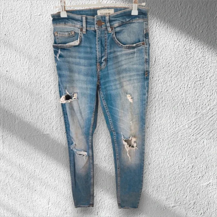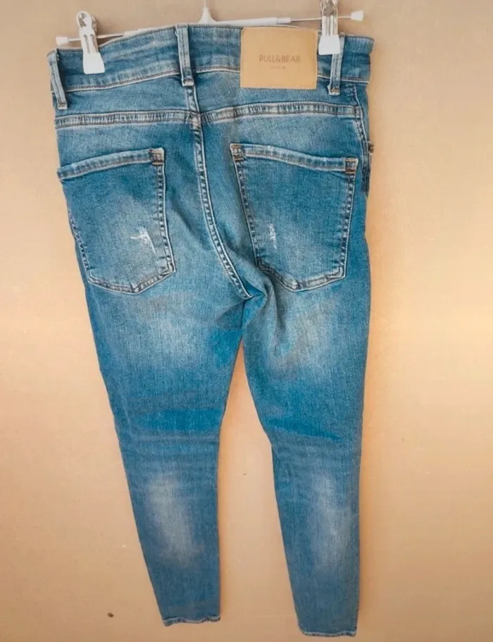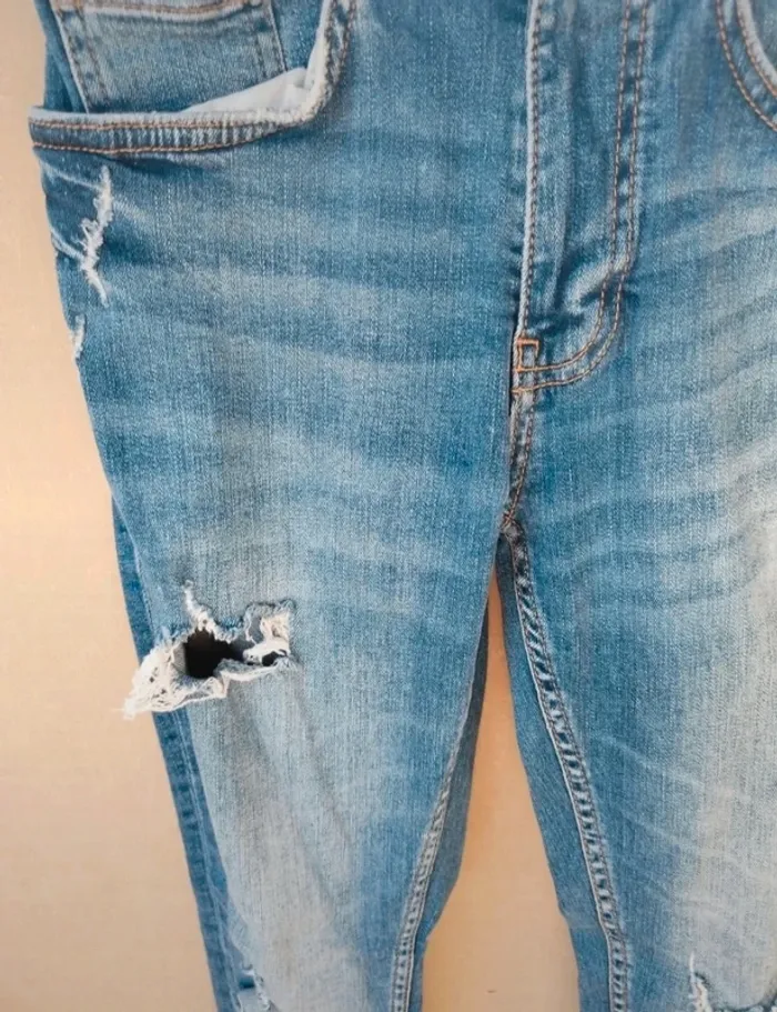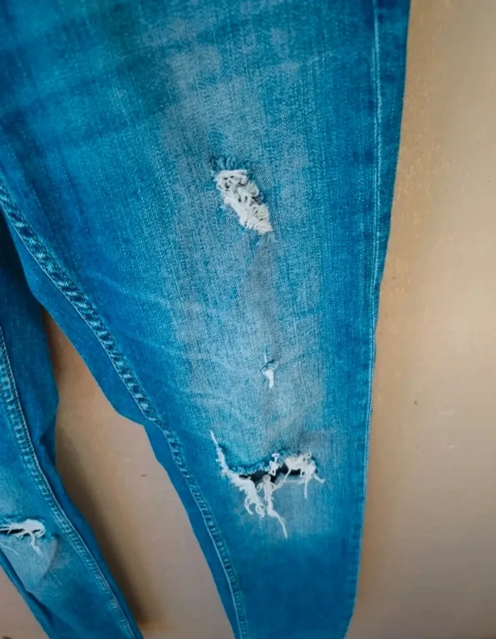 Jean troué d'origine. Très bon état . Mesure à plat de 34 à 37cm longueur totale 94cm et de l'entrejambe jusqu'en bas 68cm #chialista36