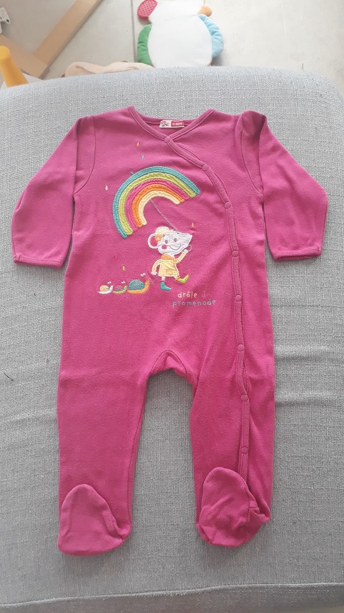 Pyjama fin rose foncé Avec une petite souris et arc en ciel devant et un escargot dans le dos Pressions sur le devant Taille 12 mois