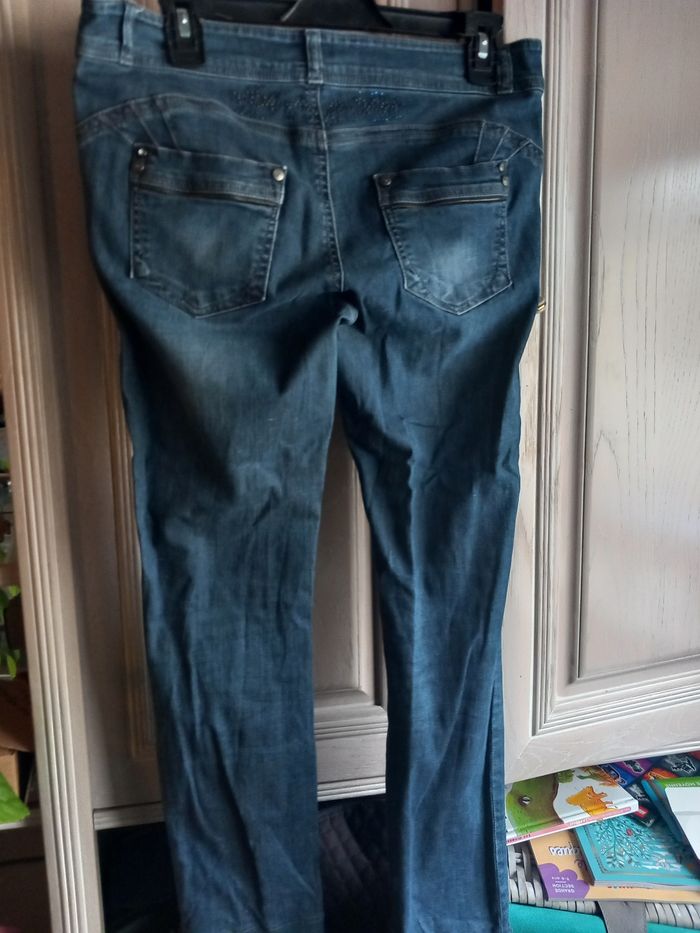 Pantacourt femme En jeans Marque Walk and talk Taille 40 Couleur bleu Matières 98% coton et 2% elasthane Avec passage pour ceinture Avec 4 poches Fermeture zipper et bouton Motifs strass derrière En très bon état Dimensions approximative 86cm de long : 44cm de large à la taille