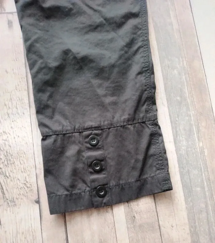 Pantalon 3/4, taille 36, coloris noir. Tissus doux effet peau de pêche. Comme neuf. #ccj1367femme #phildar36 #pantalonphildar36