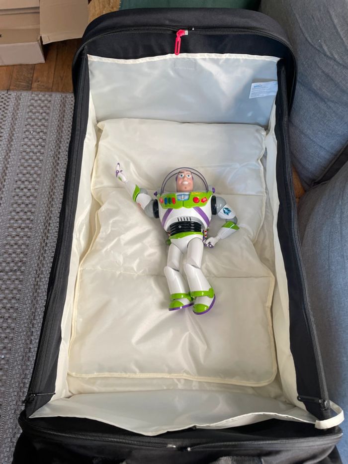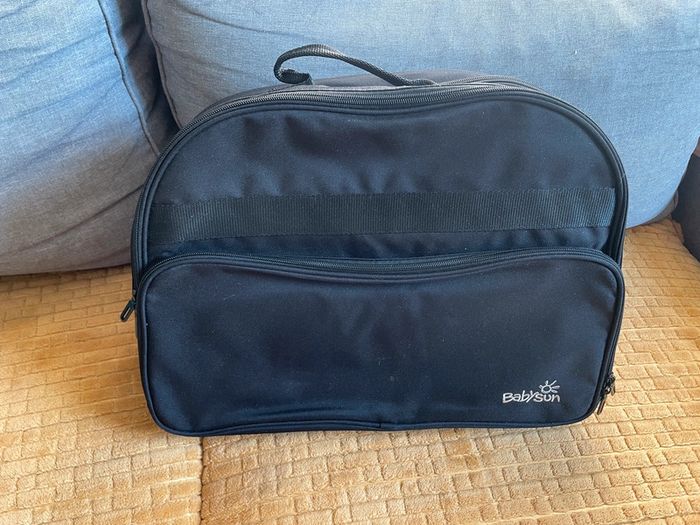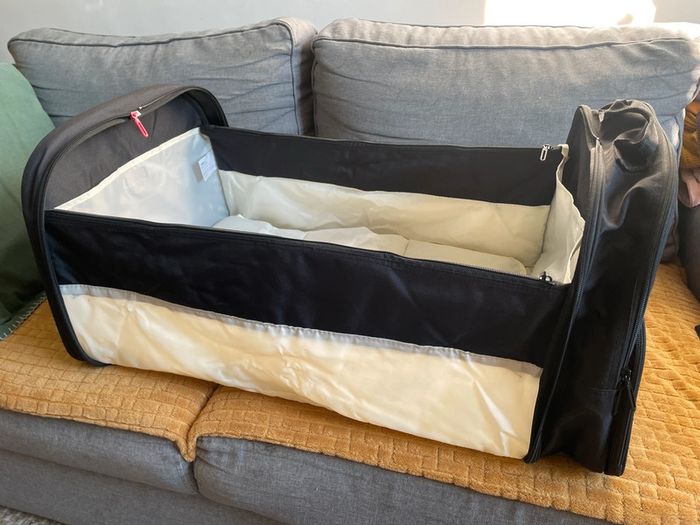 Lit de voyage babysun avec matelas et moustiquaire. Très bon état juste une petite tache sur un côté (voir dernière photo). Ne convient que pour les premiers mois. 60cm de long sur 40 cm de large.